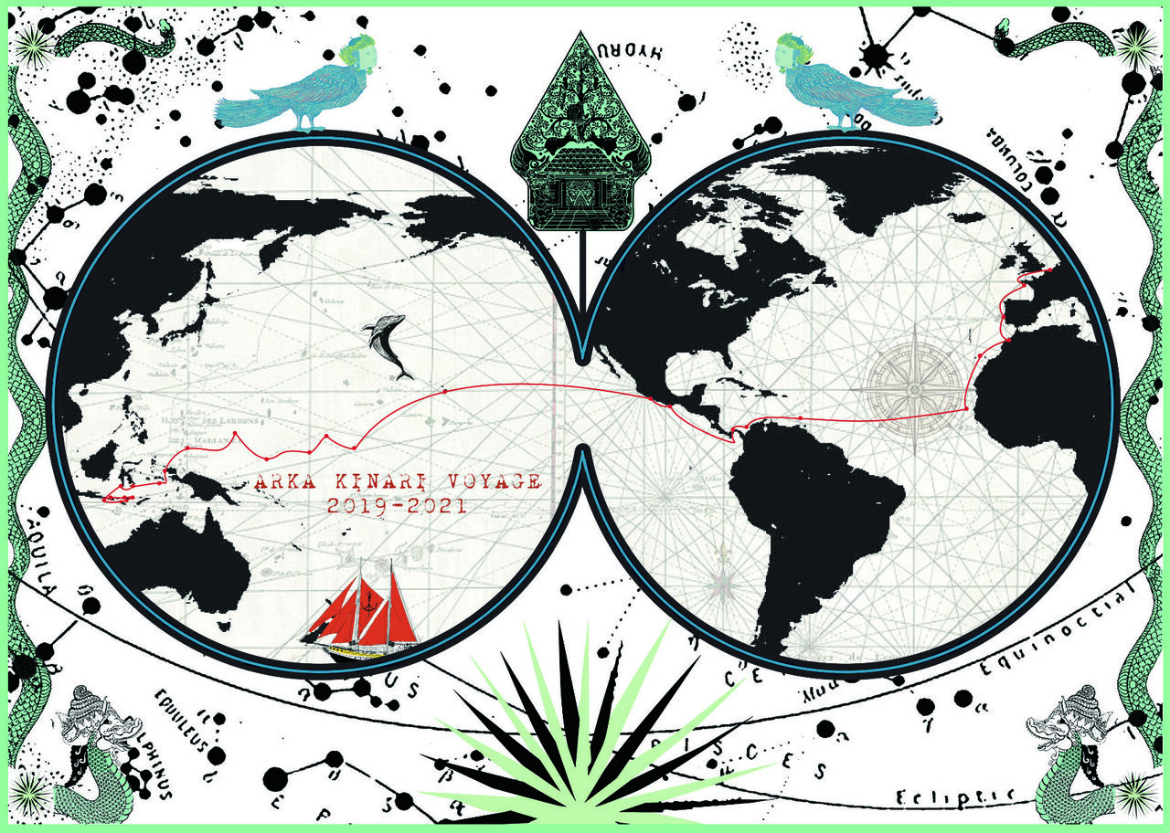 The maritime network was the original internet, mixing peoples, languages, and ideas. Arka Kinari revives disappearing trade routes with culture as the cargo to people back to their waterfronts. Arka Kinari’s maiden voyage stopped in twenty-three nations, crossing the Atlantic, Caribbean, and Panama Canal, before being trapped in the Pacific Ocean for months during the pandemic. Arka Kinari finally entered her home waters of Indonesia in September 2020, and is now touring the spice routes of the archipelago.