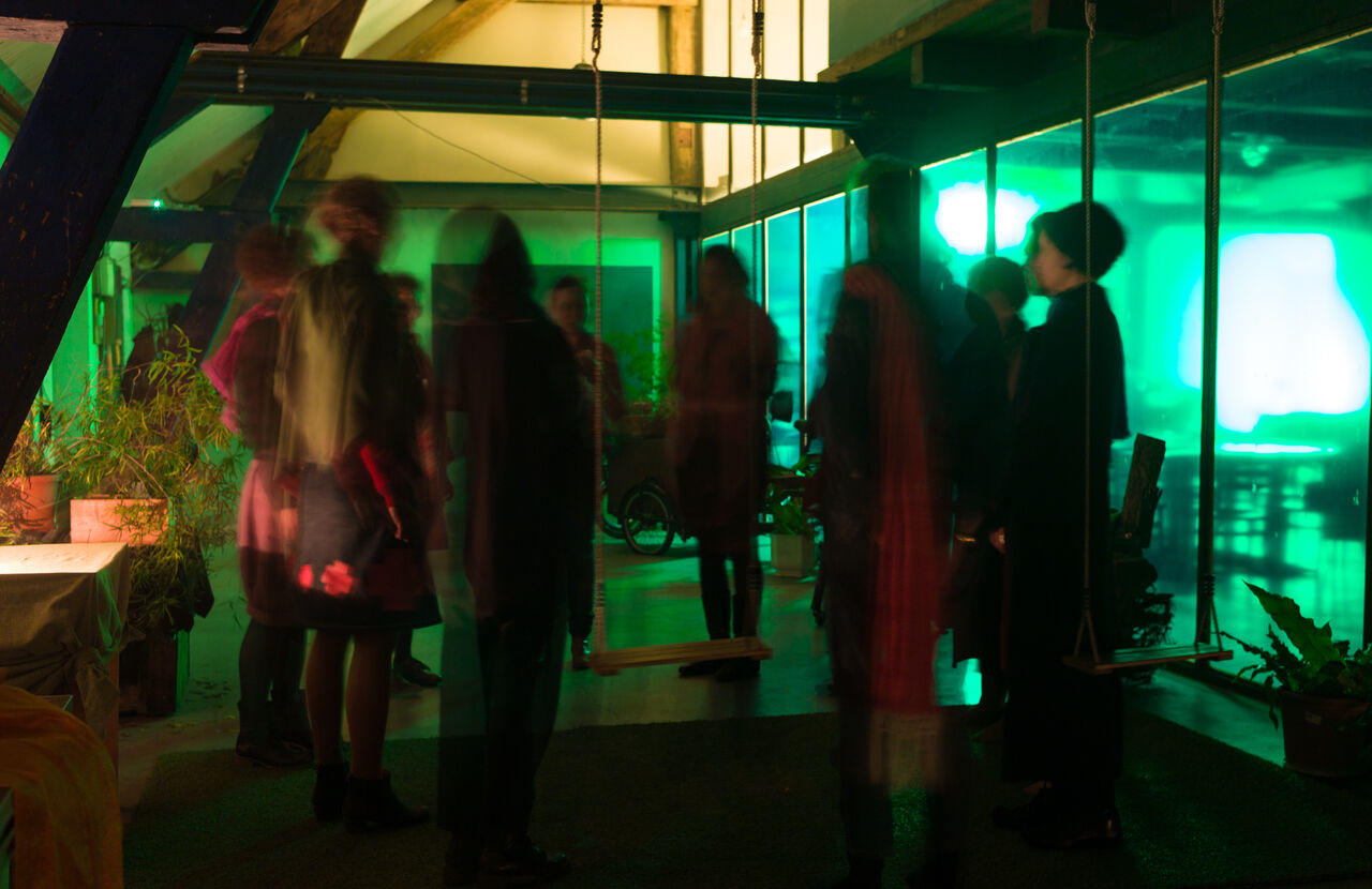 Amid the wood panelling of the 18th-century dining hall in the Hasselt beguinage, we prepared tea and sweets, hanging posters and props that the participants had created to evoke their preferred future. For those entering this space, I set some minimal guidelines: “try to stay in character as your future self” and, whatever else you say or do, “don’t break the world”. Two FoAM members acted as party hosts, pouring drinks and starting conversations. We talked about who and where we were, what we were doing in 2024, and how we had gotten there from 2014. Conversations addressed how participants’ living and working conditions had changed, from one person undertaking slow performance tours piggybacking on global logistics infrastructure, to another who joined a silent community. After an hour, we crossed the threshold, travelling “back to 2014”.