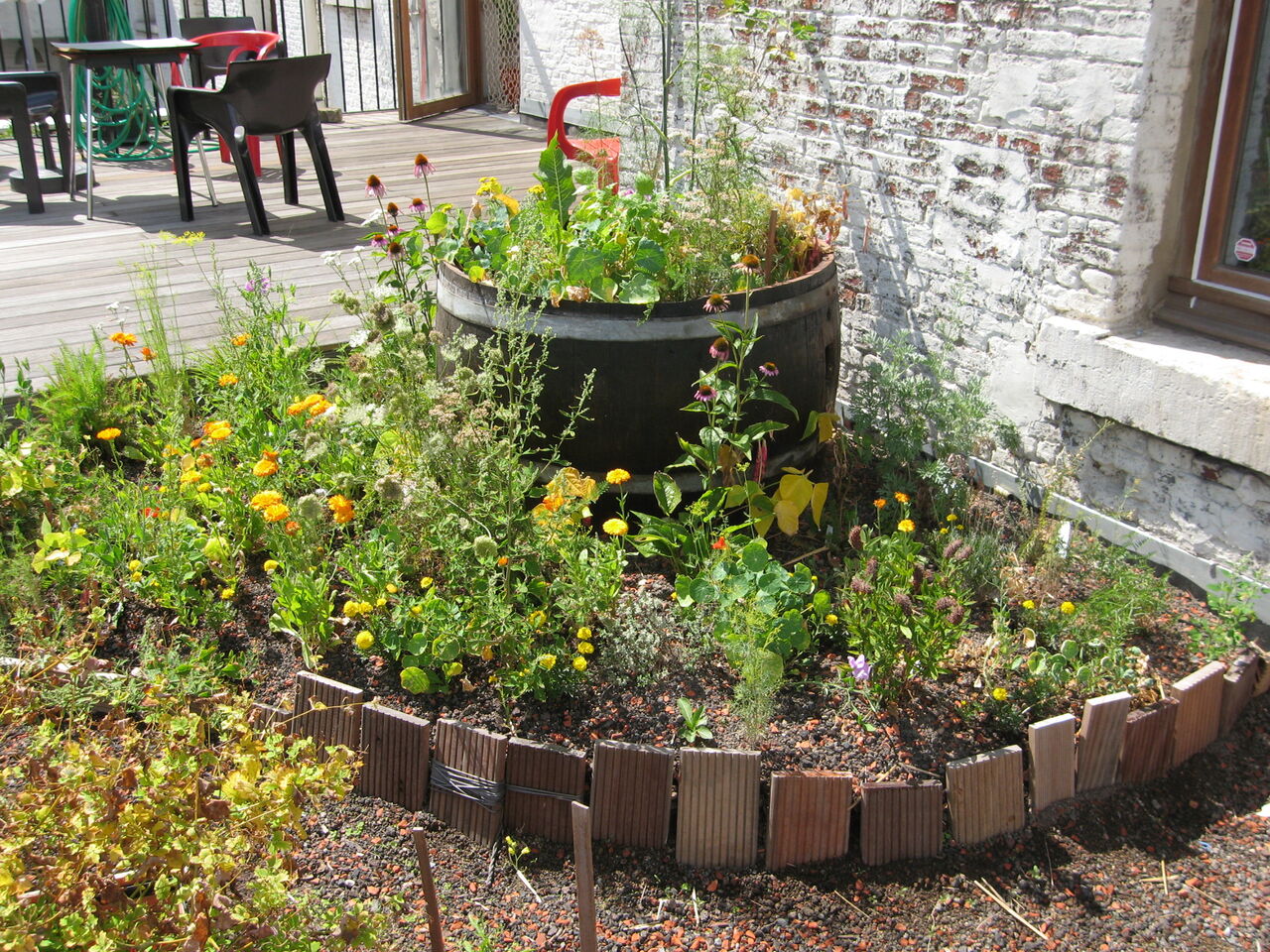 While some of us have access to land, those living in cities can practice ecosystem gardening in a jar, on a windowsill, on a balcony or a rooftop. Urban gardening doesn’t stop at fenced-off backyards and allotments; it can cultivate continuous green passages across unused, abandoned or neglected public spaces. Tiny gardens can pop up in gutters and cracked pavements, as stepping stones to parks and community gardens. No space is too small or too far from the ground. It is never too early or too late to garden a small world into being. It makes a difference, one plant at a time. This is how we came to be interested in urban ecosystem gardening at FoAM in Brussels and Amsterdam. By exploring how to design minimum viable ecosystems, we embraced permaculture guilds, and on an even smaller scale, seedballs.