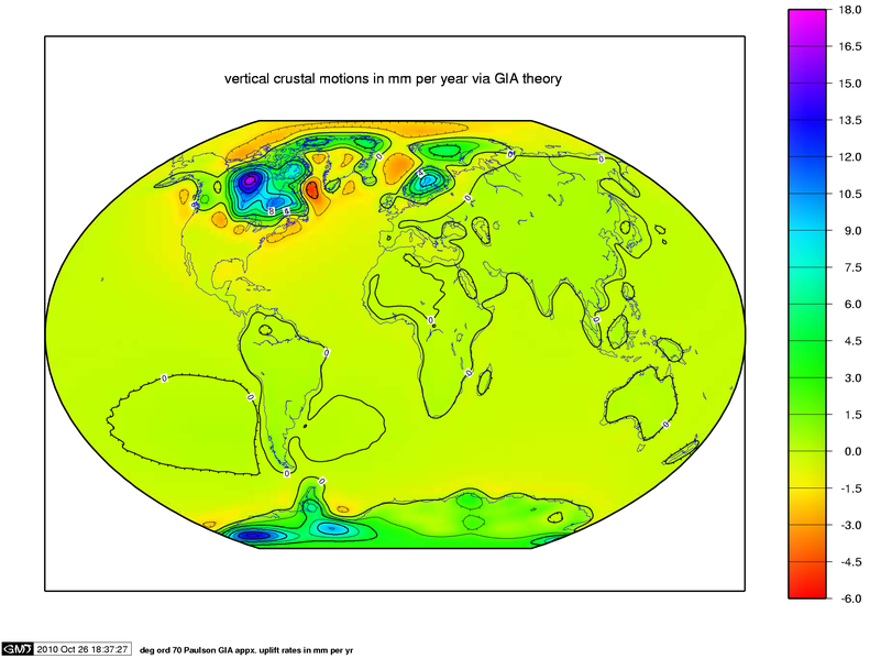 Rate of lithospheric uplift due to post glacial rebound (in Inference of mantle viscosity from GRACE and relative sea level data. doi:10.1111/j.1365-246X.2007.03556.x