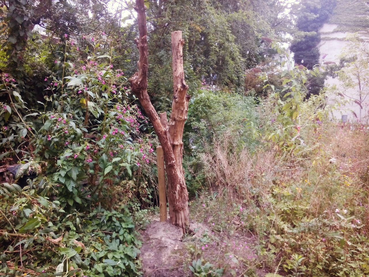 A gardener works both with the living and the dead or decomposing. In my own neighborhood, chopped down tree trunks are left out with the rubbish. I have started collecting and replanting them in my garden forming a small zombie forest. Inspired by experiments with "structural complexity enhancement" in Vermont's Jericho Research Forest, these massive wooden heralds skip the slow accumulation of biomass and decay in old growth forests.