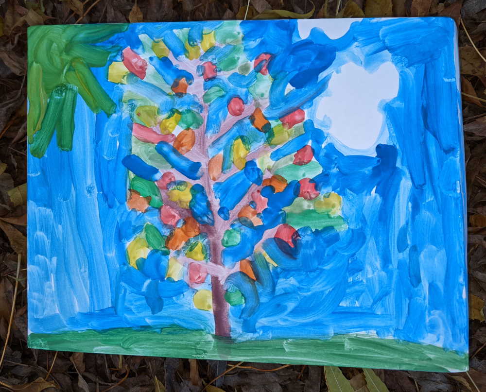 We rescued the patio from seasons of neglect, transforming the glass-topped table into a painting and collage studio. Kids perch on too-large chairs, facing west. Unruly Kikuyu resists sprawling rosemary, nettles, parsley, Greek basil, mint. Around the perimeter: peach, apricot, nectarine, plum, olive, lemon, orange, and magnolia. Queen is the Shadow Tree, named some summers ago, when we would climb the late afternoon branches it cast on the grass. The only tree remaining which had witnessed both my son’s childhood, and my own.
